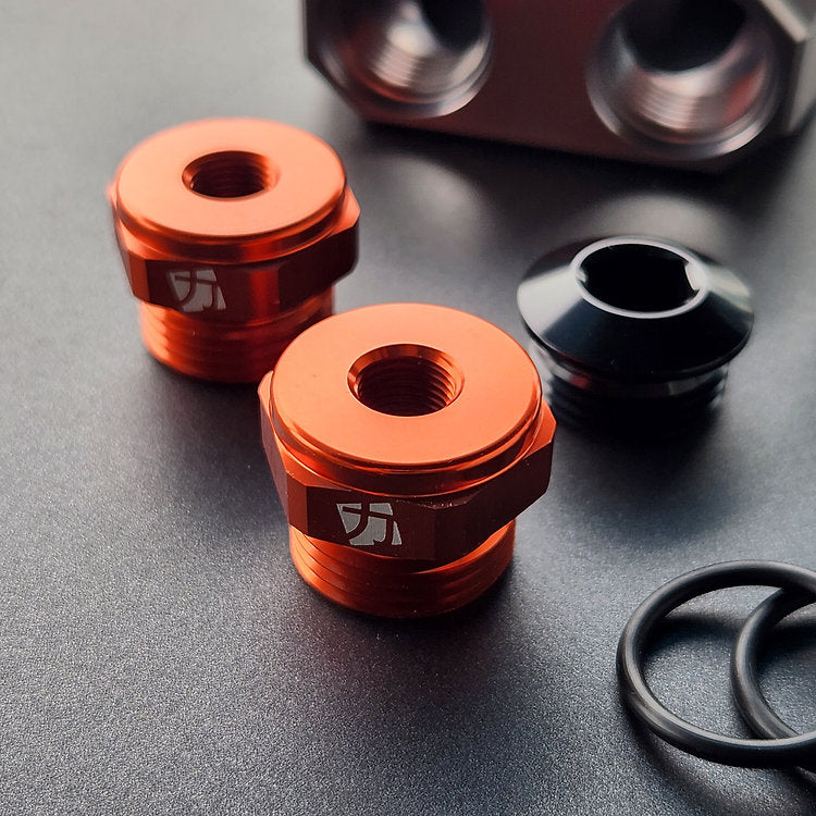 If you are looking for a failproof system to keep tabs on your oil temperature, look no further! Our Chikara oil temperature sensor sandwich plate adapter seamlessly attaches to the engine block and allows for up to 2 sensors to be attached using an industry-standard 1/8" NPT. This ensures accurate readings to monitor performance, whether you're on hardcore track-days or casual cruises. We also include one block-off in case you only need to use one sensor, giving you flexibility and reliability. Trust Chikara Motorsports' dedication to quality and performance for all your Miata needs.